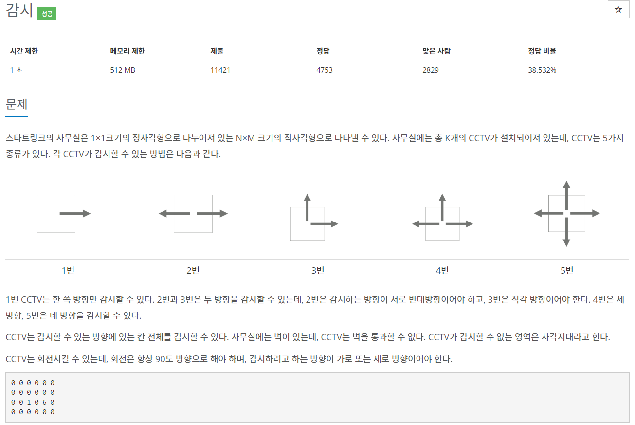 이렇게 하면 DFS를 타고 타고 모든 경우의 CCTV 범위의 사각지대의 수를 찾을 수 있다.