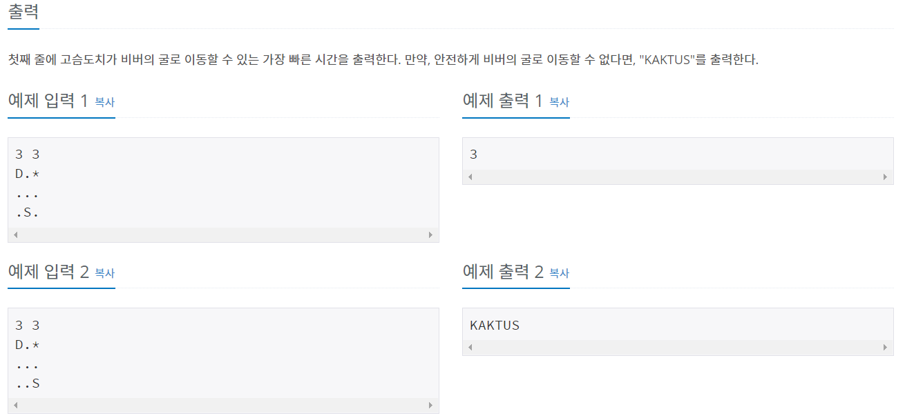 고슴도치가 비버굴에 몸을 피하는 최소 시간을 출력하면 되는 문제이다.