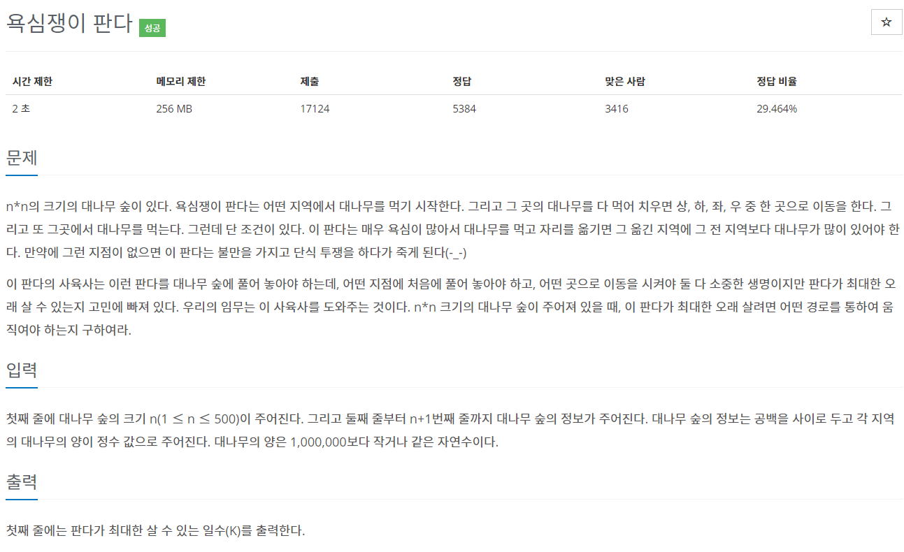 정답률 29%인 dp 문제 욕심쟁이 판다 문제이다.