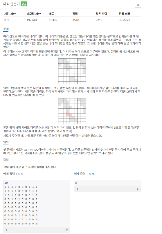 섬과 섬사이의 가장 짧은 거리를 어떻게 뽑아내야할지를 도저히 생각해내지 못했다.
