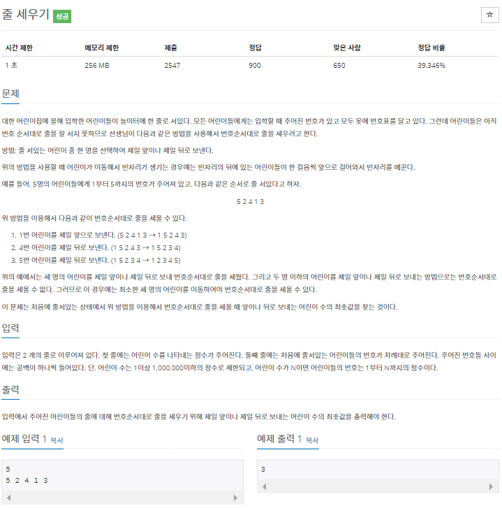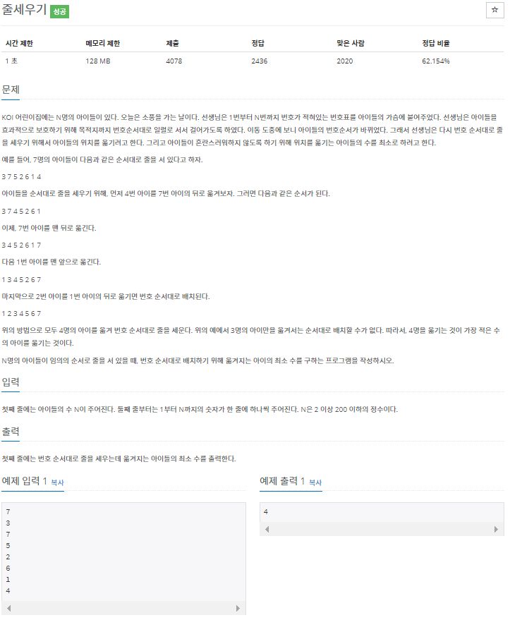 백준 7570번 줄 세우기 :: 마이구미