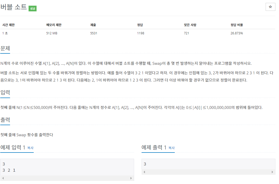진짜 버블소트 코드로 swap의 횟수를 세면 시간 초과가 나온다.