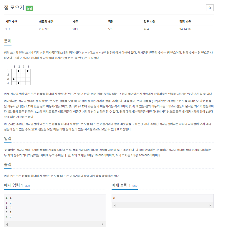 정보올림피아드 easy 문제집에서 만난 점모으기 문제이다.