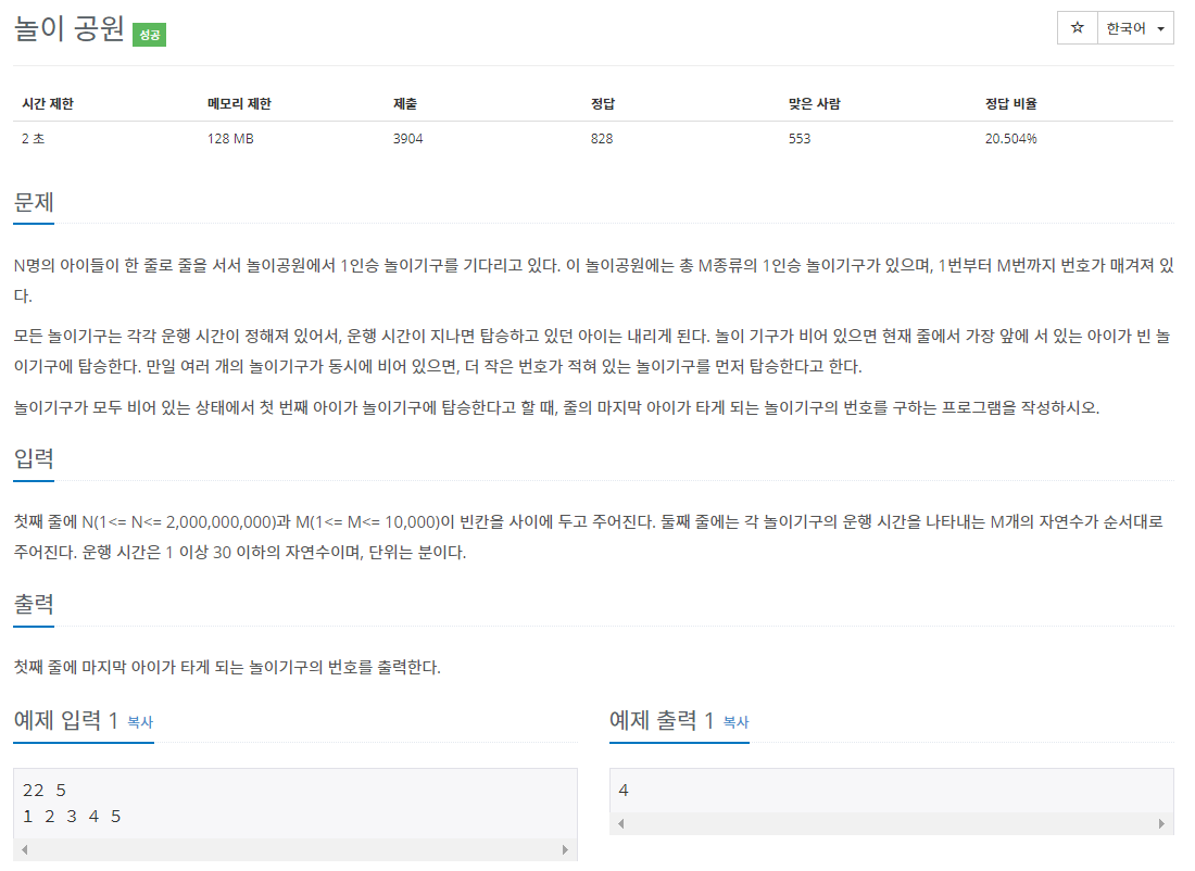n번째 학생이 몇 번째 놀이기구를 탔는지 아까와 같은 %연산으로 찾으면 된다.