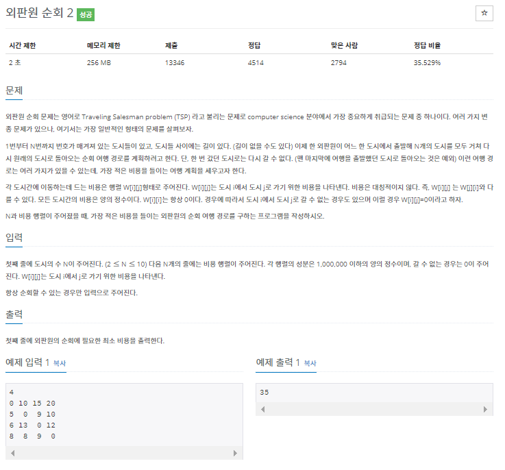 여러가지 방법으로 풀 수 있는 외판원 순회 2 문제를