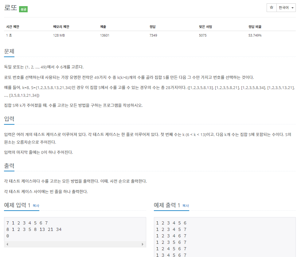 여러 가지의 방법으로 풀 수 있는 문제인 로또 문제이다.