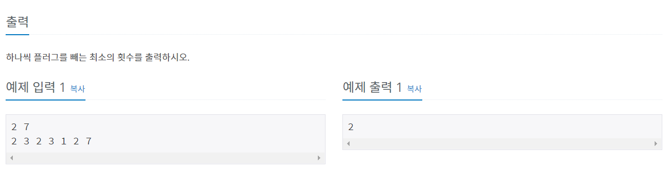 플러그를 빼는 최소의 횟수를 출력하면 된다.